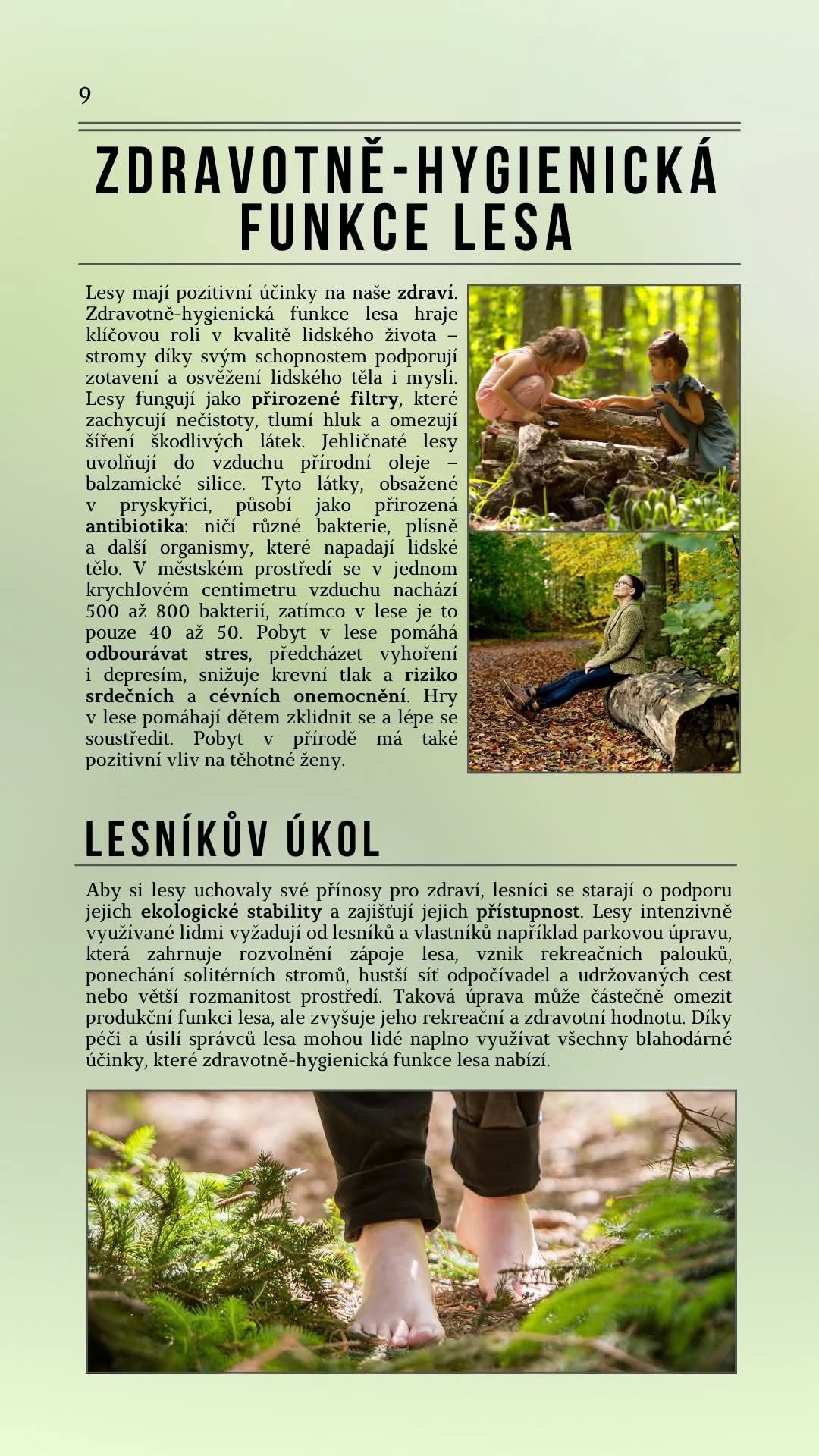 Choďte do přírody, tam je ta nejlepší živá energie, chlorofyl, čistý vzduch, záporné ionty, prostě vše, co potřebujete k tomu, aby vás to povzbudilo, když to budete potřebovat. O zdravotně-hygienické funkci lesa se více dozvíte na obrázku níže.